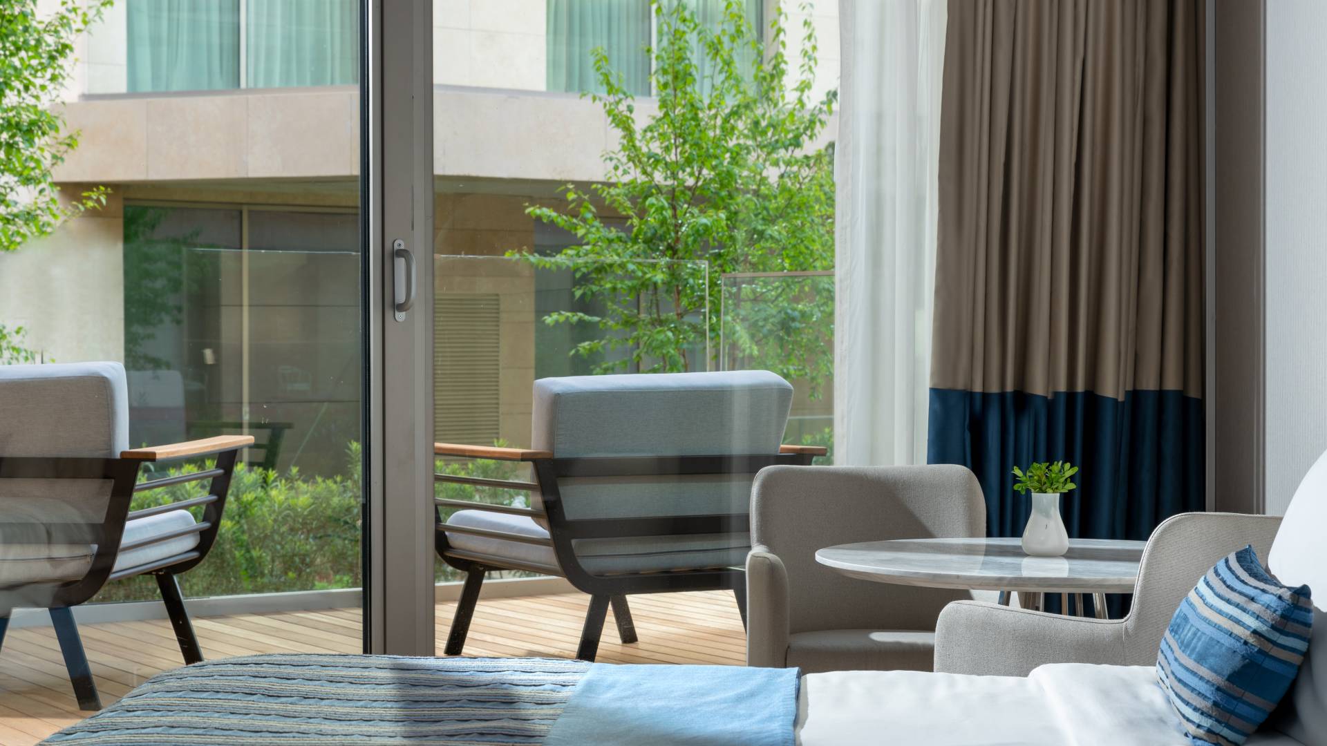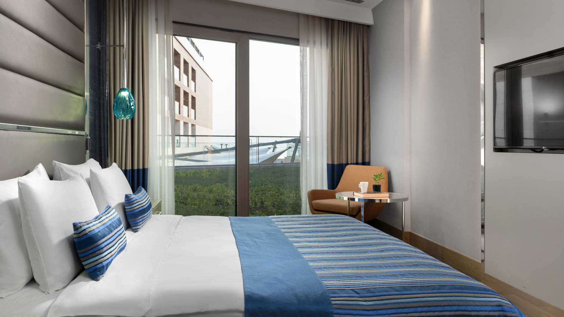 Şehrin karmaşasından uzak, ulaşım kolaylığı sunan bu özel lokasyon; iş veya tatil amaçlı seyahat eden herkes için özenle düşünülmüş detaylarla üst düzey bir konfor sağlıyor. Denize sıfır konumu sayesinde gün doğumunu odanızdan izleyebilir, gün batımında sahil yürüyüşlerinin keyfini çıkarabilirsiniz.