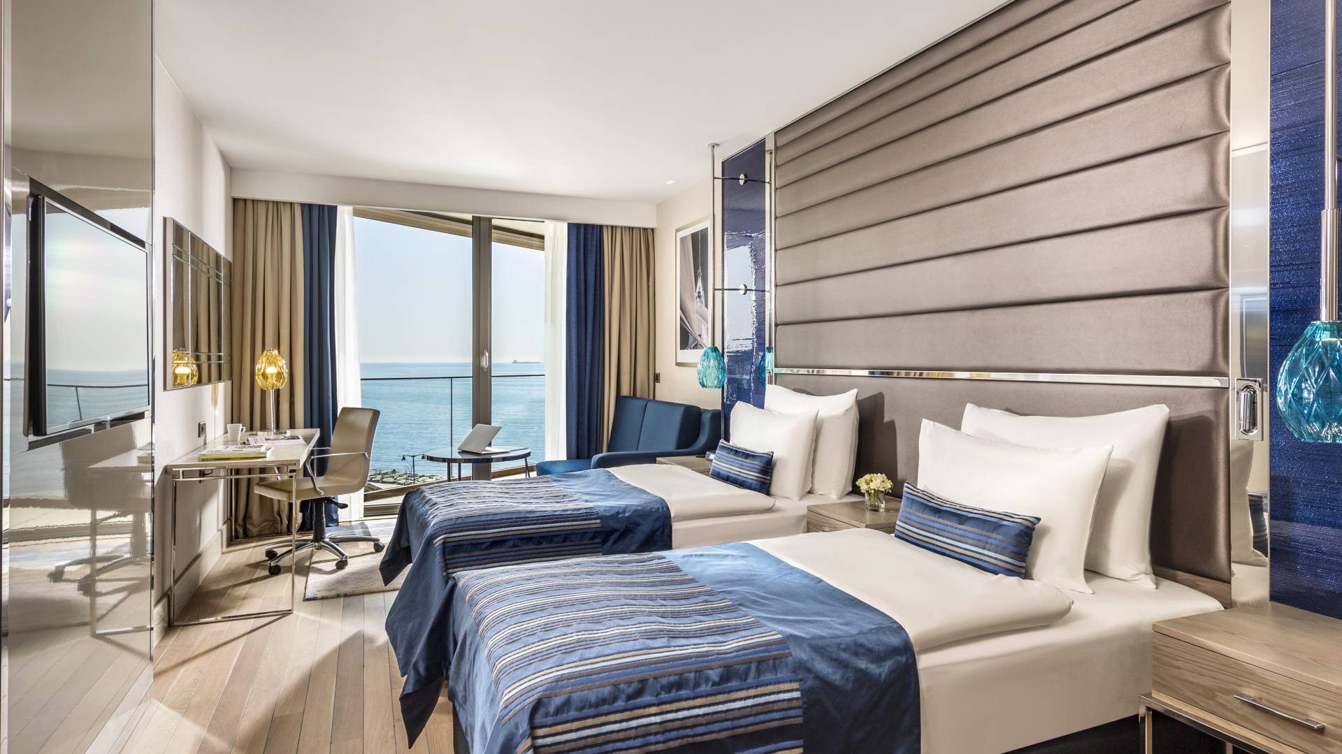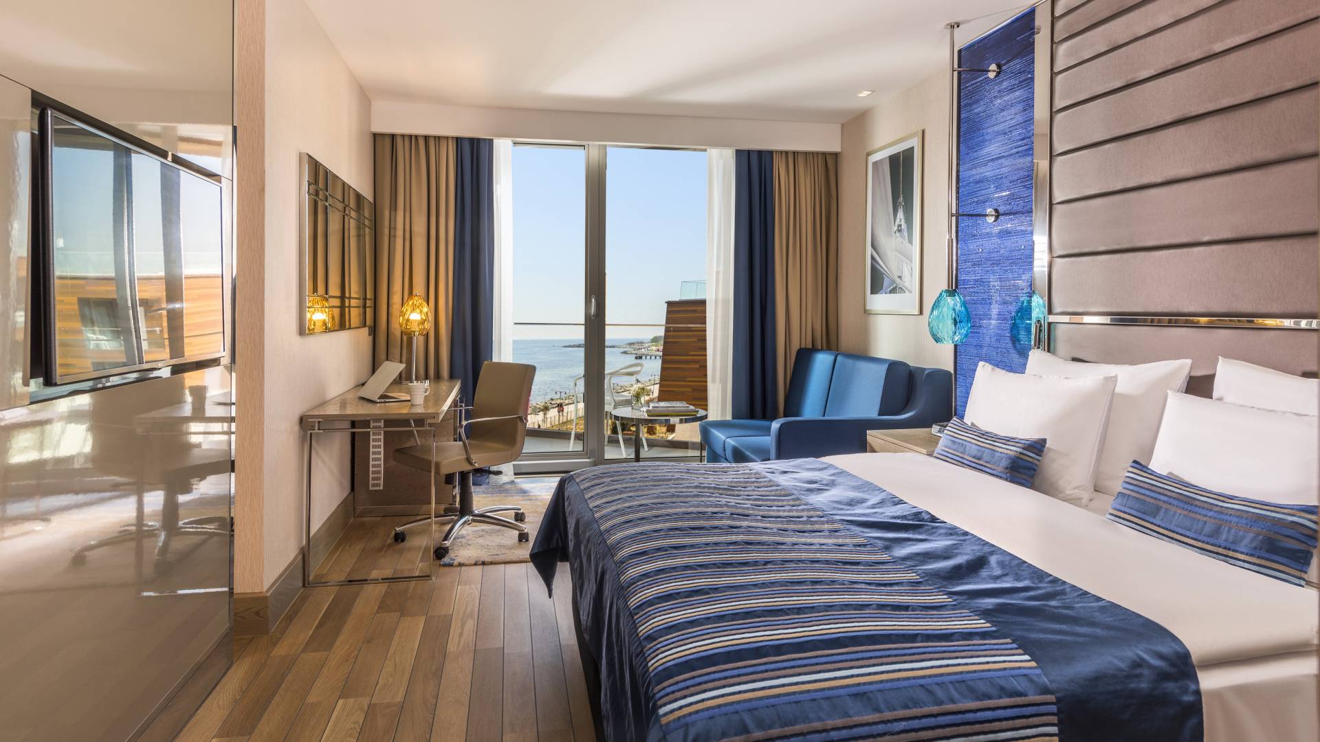 Tavandan yere kadar uzanan pencereler balkona açılır ve manzaranın tadını çıkarırken konaklamak için ne kadar doğru bir seçim yaptığınızı hissedersiniz. Sade ve zarif tasarımı ile iş ya da tatil amaçlı seyahat eden misafirlerimizin tüm konforunun düşünüldüğü bu oda kategorisinde bir adet çift kişilik yatak ya da iki adet tek kişilik yatak ve bir adet açılabilir koltuk bulunur. Yer döşemesi anti-alerjik özelliği olan ve marin temasına uyumlu ahşap parkedir. Odadaki diğer tüm detaylar, konaklamanız boyunca konforunuz için size eşlik eder.