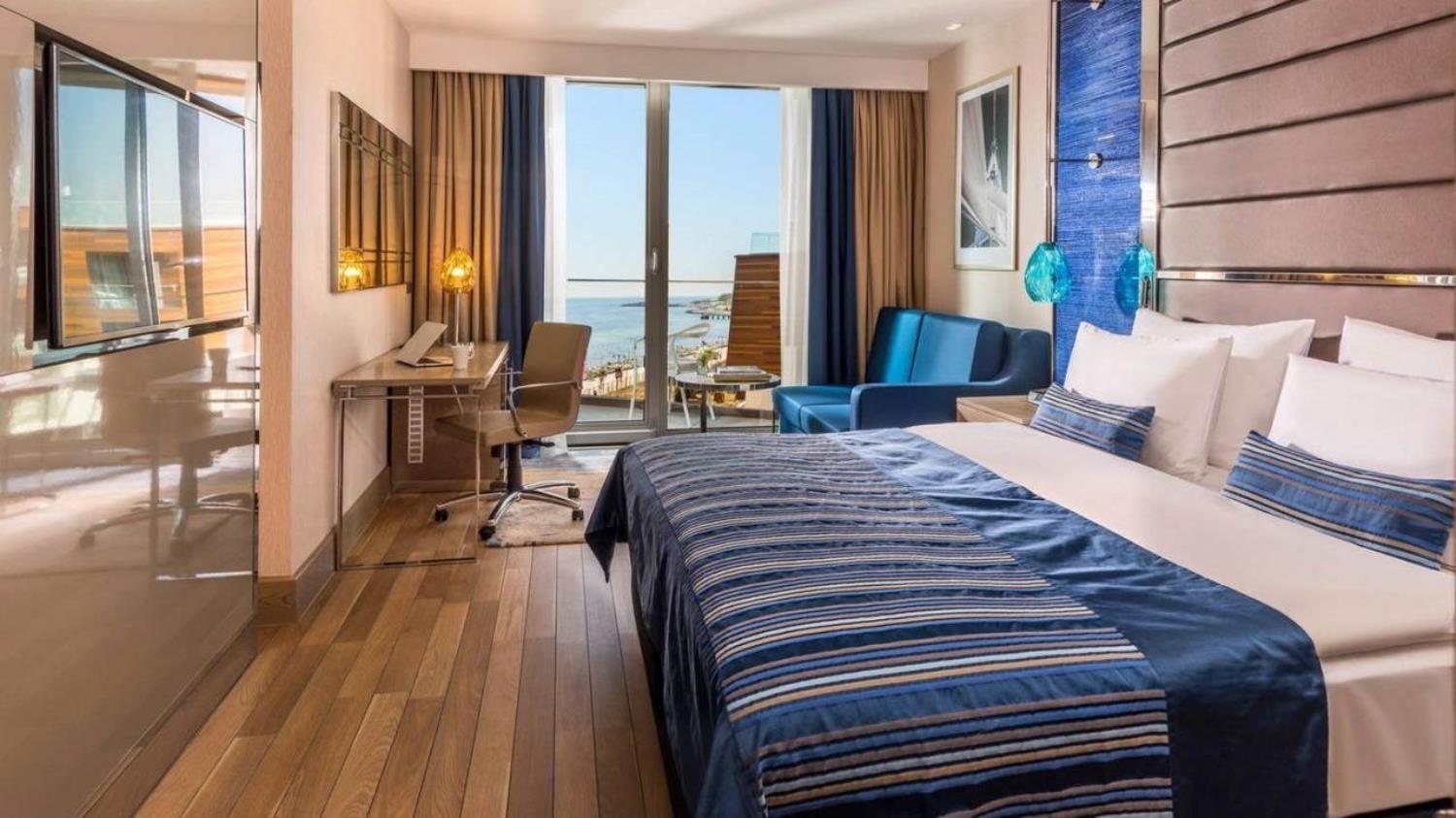 Tavandan yere kadar uzanan pencereler balkona açılır ve manzaranın tadını çıkarırken konaklamak için ne kadar doğru bir seçim yaptığınızı hissedersiniz. Sade ve zarif tasarımı ile iş ya da tatil amaçlı seyahat eden misafirlerimizin tüm konforunun düşünüldüğü bu oda kategorisinde bir adet çift kişilik yatak ya da iki adet tek kişilik yatak ve bir adet açılabilir koltuk bulunur. Yer döşemesi anti-alerjik özelliği olan ve marin temasına uyumlu ahşap parkedir. Odadaki diğer tüm detaylar, konaklamanız boyunca konforunuz için size eşlik eder. *Bu oda kategorimiz kısmi deniz manzarasına sahiptir.