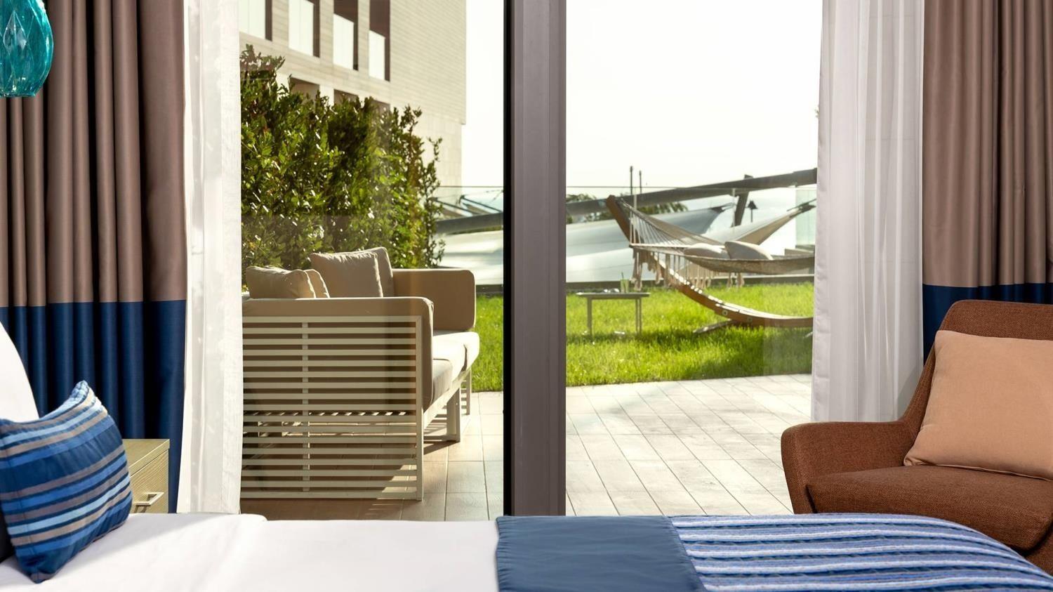 Hem iş hem tatil amaçlı seyahat eden misafirlerimiz için konfor adına verebileceği her şeyi maksimum düzeyde sağlamak için tasarlandı. Biri 1 adet çift kişilik yatak, diğeri 2 adet tek kişilik yatak bulunan iki yatak odasına sahip süitte dilediğiniz zaman toplantılarınız için de kullanabileceğiniz geniş bir yemek odası yer alıyor. Mobilyalı geniş terasında hamakta dinlenebilir, şezlonglarda güneşlenebilir ya da oturma grubunda bahçenin tadını çıkarabilirsiniz. Oturma odası ve iki yatak odasında toplam 3 adet televizyon, giyinme odası ve ayrıca ikinci yatak odasında ekstra bir banyosu bulunuyor. Odadaki diğer tüm detaylar konaklamanızın konfor ve prestij sağlaması için size eşlik ediyor.