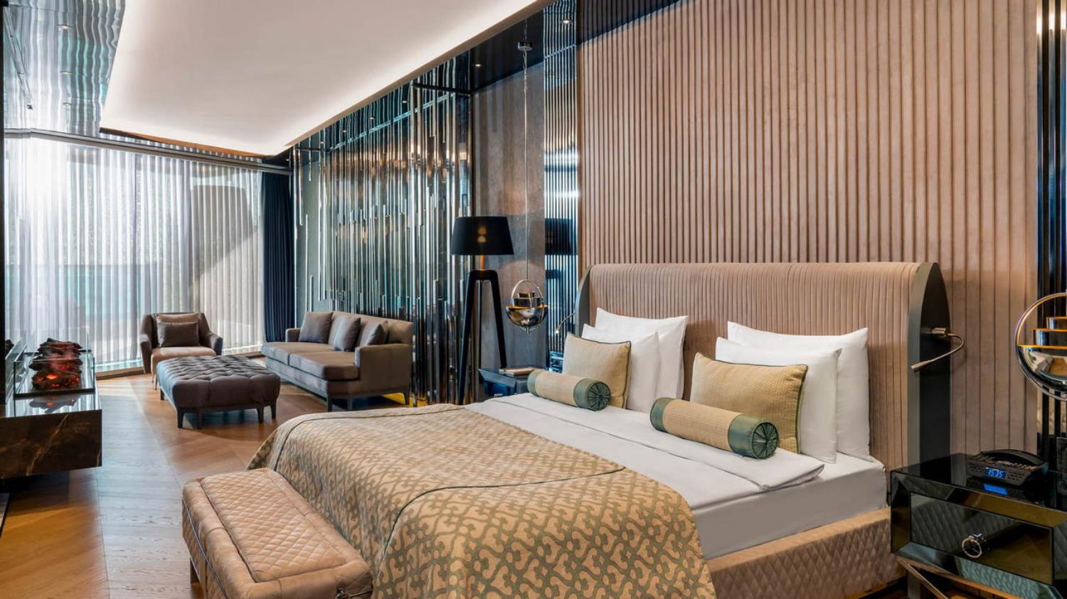 Prestij bu kadar sade ve net tanımlanabilir. Modern tasarımı ile göz kamaştıran süitte, ferah ve konforlu bir salon, 1 adet çift kişilik yatak ve 2 adet tek kişilik yatak bulunduran iki geniş yatak odası, gerektiğinde toplantılarınız için de kullanabileceğiniz mermer yemek masası, çalışma masası, 2 adet banyo, mutfak ve giyinme odası bulunuyor. Mobilyalı geniş terasında panoramik deniz manzarasına karşı dilerseniz konuklarınız ve aileniz ile keyifli zaman geçirebilir ya da size özel dalga havuzunun tadını çıkarabilirsiniz. Şık mermer banyosunda yağmur duşu ve jakuzinin yanı sıra sauna hizmetinize sunuluyor. Üst düzey servis ve lüks konaklama deneyimi Florya’da sizi bekliyor.